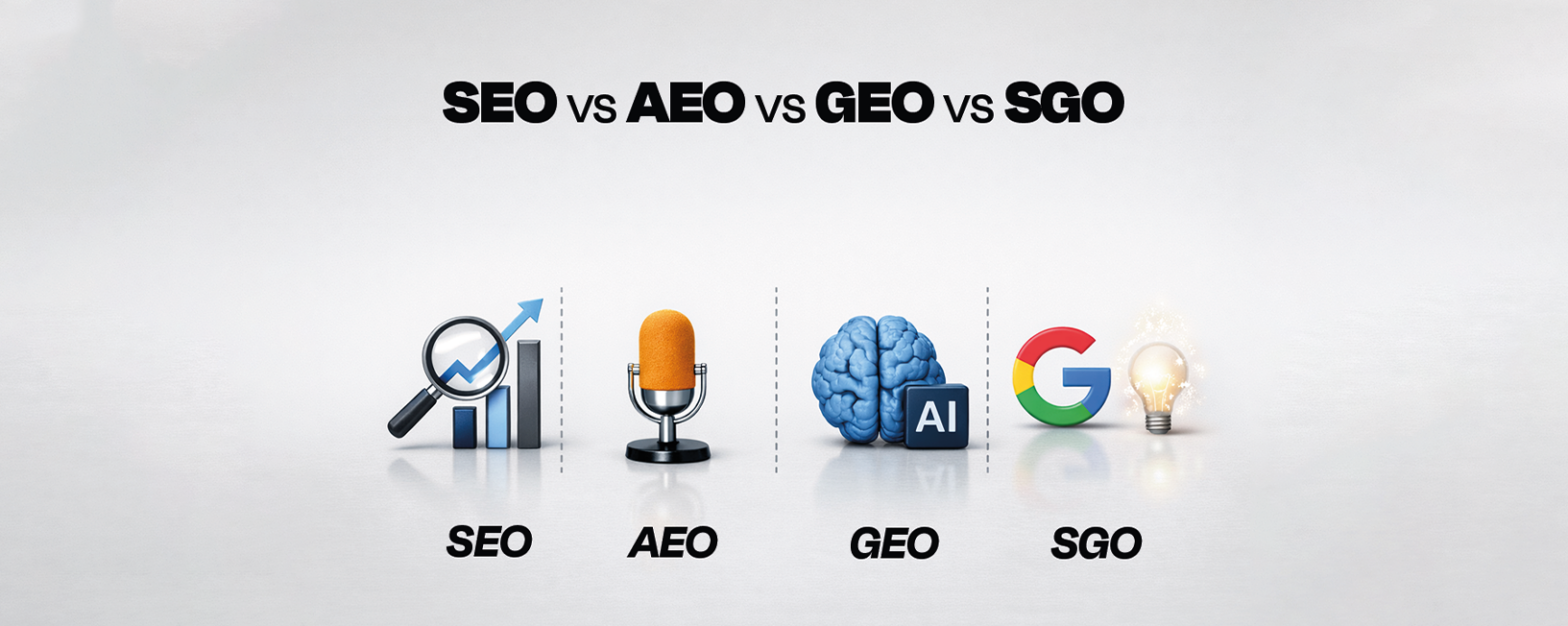 SEO, AEO, GEO, SGO: Diferenças e Como Aplicar
